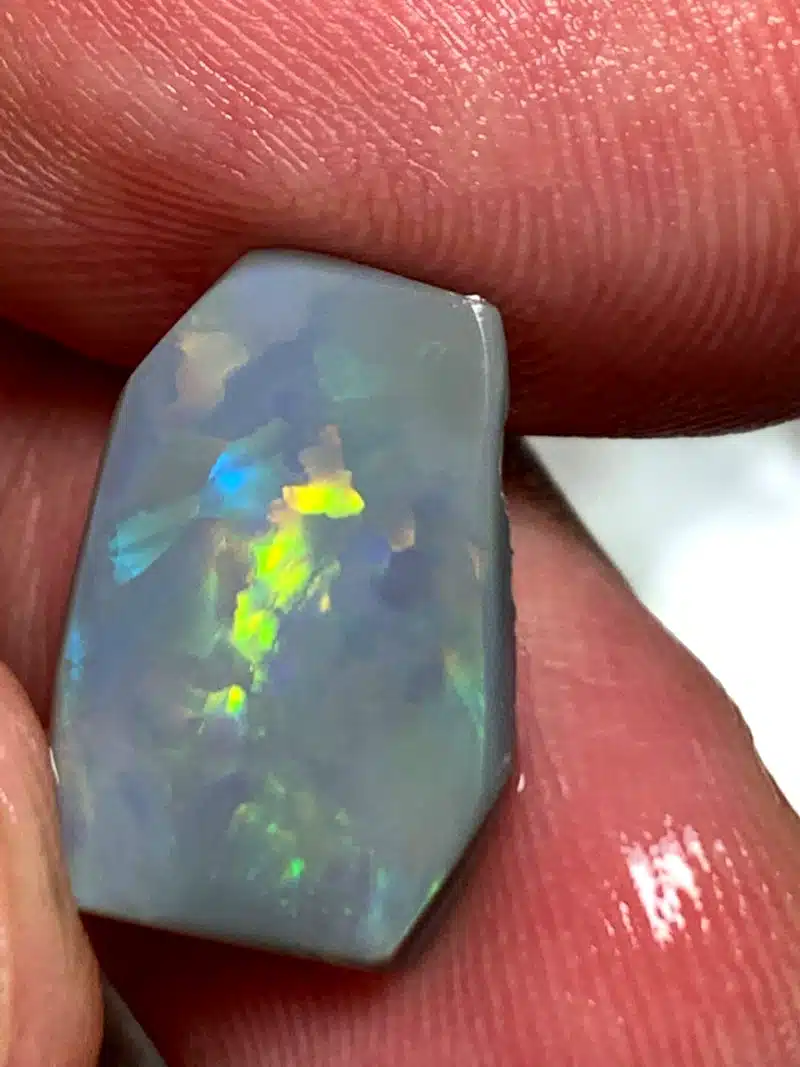 Opale de Lightning Ridge . Australe. d’un poids total de 5 carats ..Elle est présenté humide pour l exposition des couleur Dimension de 16x10x 3 mm